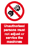 unauthorised persons must not adjust or service the machines safety sign
